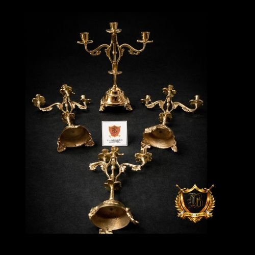 Tempat Lilin 3 Cabang Premium – Coran Kuningan Asli Elegan & Kokoh
